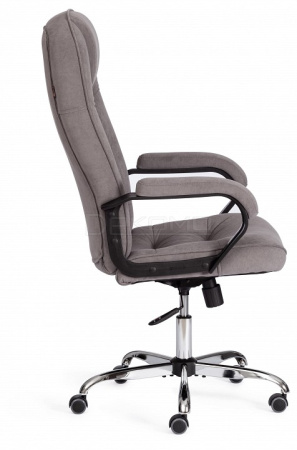 Офисное кресло регулируется по высоте и наклону с фиксацией в одном положении. Жесткость качания настраивается при помощи специального барабана. Металлическая хромированная крестовина устойчива, надежна, выглядит фундаментально и респектабельно.