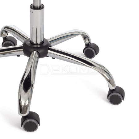 Металлическая хромированная крестовина устойчива к усиленной эксплуатации, выглядит стильно и утонченно. Ролики из полиуретана с прорезиненными вставками не царапают напольное покрытие, бесшумны и украшены элегантными декоративными вставками. Ролики и крестовина соответствуют стандарту BIFMA. В кресле используются газлифты 3 класса, он способен выдерживать вес до 90 кг. Оригинальная стежка на ткани кресла добавляет неповторимый и уникальный образ изделию.