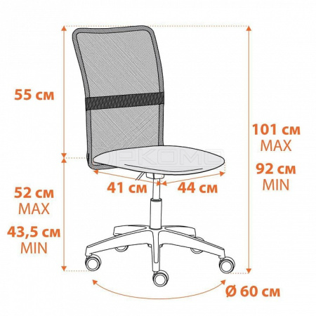 Крепкая 5-лучевая полиамидная крестовина диаметром 600 мм устойчива, прочна и надежна. Компьютерное кресло оснащено газлифтом 3 класса с ходом 100 мм, позволяющим настроить нужную высоту.