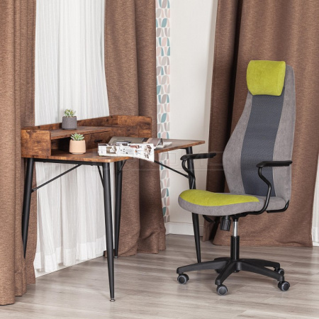 Компьютерное кресло AVIATOR - удачное сочетание привлекательности, эргономичности и функциональности. Стильная модель будет отлично смотреться в любом рабочем кабинете. 5-лучевая крестовина диаметром 650 мм устойчива, прочна и имеет долгий срок службы. Фиксированные подлокотники из металлической трубы диаметром 19 мм с пластиковой накладкой, механизм изменения высоты сиденья и угла наклона до 15 градусов с возможностью фиксации в рабочем положении, настраиваемый подголовник на липучке позволят принять комфортную позу, снять напряжение с позвоночника. Высококачественные полиамидные ролики дополнительно прорезинены для предотвращения повреждения напольного покрытия. Отлично подходят для использования на паркете и ламинате. Диаметр штока ролика 11 мм. Для максимального удобства кресло оснащено наполнителем из пенополиуретана (ППУ) плотностью не менее 30 кг/м3. Модель обита износостойким флоком плотностью 320 г/м2 с водоотталкивающей пропиткой. Такой материал не требует сложного ухода, долговечен, выглядит стильно и привлекательно. Однослойная сетчатая обивка плотностью 280 г/м2 обеспечит вентиляцию и добавит комфорт в жаркое время года. Кресло оборудовано надежным газлифтом 3 класса с ходом 100 мм. Серый и оливковый цвета отлично сочетаются между собой, подчеркивая элегантность и уникальность модели. Компьютерное кресло AVIATOR станет незаменимым предметом интерьера, прекрасно впишется в рабочий кабинет офиса или дома, удивит вас своей долговечностью, удобством и отличными эксплуатационными качествами. Модель поставляется в разобранном виде. Необходима простая сборка по прилагаемой инструкции. Максимальная нагрузка 120 кг.