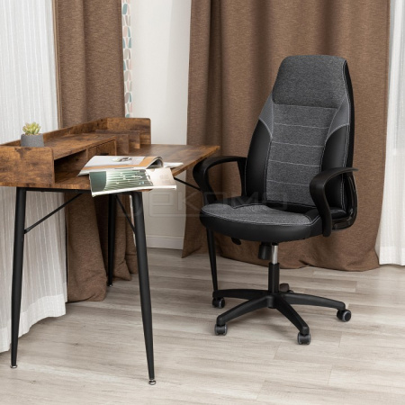 Уникальные черты компьютерного кресла INTER из коллекции OFFICE помогут довести интерьер вашего рабочего пространства до совершенства. Модель гармонично впишется в любое помещение, сочетая в себе функциональность и оригинальный внешний вид. Каркас из экологически безопасной фанеры толщиной более 10 мм гипоаллергенен и надежен. Широкое сиденье с мягким наполнителем из пенополиуретана (до 35 кг/м2) стандартной плотности легко подстраивается под контуры тела человека, обладает отличными эксплуатационными качествами. Высота и наклон с фиксацией в одном положении регулируется при помощи основательного механизма. Пластиковая крестовина с декоративными вставками и специальными насечками для предотвращения соскальзывания ног надежна, устойчива к частому использованию и усиленной эксплуатации. Полиуретановые ролики с прорезиненными вставками имеют тихий ход, подходят для использования на ламинате и паркете. Ролики и крестовина соответствуют стандарту BIFMA. Используется газлифт 3 класса, он способен выдерживать вес до 120 кг. Фиксированные пластиковые подлокотники с декоративными вставками снимут нагрузку с плеч и помогут расслабиться. Оригинальное сочетание высокопрочной износостойкой экокожи и крепкой ткани выглядит стильно и изысканно. Экокожа, используемая при изготовлении кресла, выдерживает до 50 000 циклов на истирание по Мартиндейлу, ткань флок также выдерживает до 50 000 циклов. Ткани с прочностью более 35 000 циклов являются самыми долговечными. Мебель, в которой используются такие ткани можно использовать не только дома но и в ресторанах, салонах красоты, приемных. Привлекательная модель INTER представлена в коричневом, черном и сером цветах. Офисное кресло произведет впечатление на вас своей солидностью, долговечностью и отличными эксплуатационными качествами. Модель поставляется в разобранном виде. Необходима простая сборка по прилагаемой инструкции. Максимальная нагрузка 120 кг.