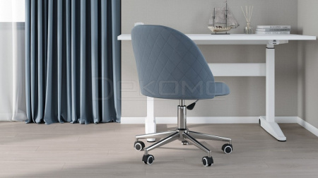 Однотонная бархатистая обивка из велюра тактильно приятна и практично, так как легко чистится. Кресло оснащено хромированной крестовиной с мягкими полиуретановыми роликами, которые позволяют плавно перемещаться и с легкостью переключаться с одной задачи на другую.