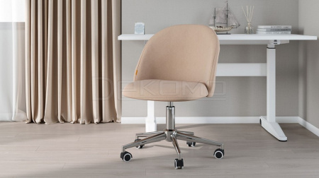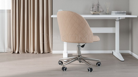 Однотонная бархатистая обивка из велюра тактильно приятна и практично, так как легко чистится. Кресло оснащено хромированной крестовиной с мягкими полиуретановыми роликами, которые позволяют плавно перемещаться и с легкостью переключаться с одной задачи на другую.
