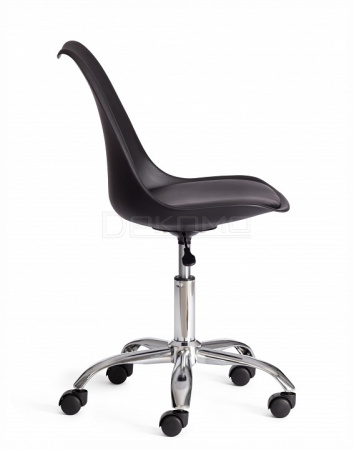 Великолепное офисное кресло TULIP из коллекции Modern выполнено в стиле известного стула Tulip, спроектированного американским архитектором Ээро Саариненом в 50-х годах двадцатого века. Кресло подкупает своей универсальностью и комфортной посадкой, благодаря которым варианты его расположения в интерьере безграничны. Металлическое основание с регулировкой высоты, цельная спинка и сиденье из пластика с мягкой накладкой из экокожи обеспечат удобную посадку за столом на протяжении всего рабочего дня. Колесики позволяют плавно и бесшумно передвигать кресло. Накладка из экокожи красивая, надежная, не требующая сложного ухода. Материал сочетает в себе мягкость и эластичность натуральной кожи с прочностью текстильных волокон. Пластик черного цвета и металл прочные и долговечные материалы, не требующие специального ухода, способные выдерживать большую нагрузку. Кресло подойдет для кабинета, для офиса или для дома. Кресло очень простое в сборке, инструкция по сборке прилагается.