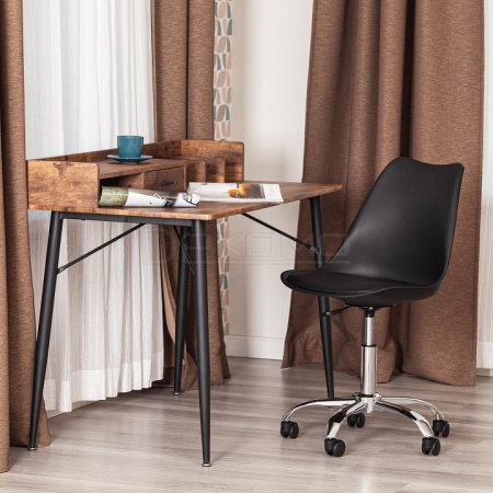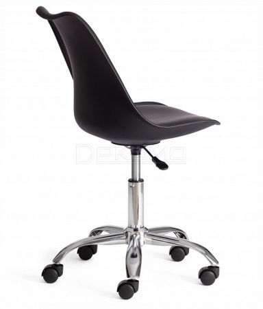 Великолепное офисное кресло TULIP из коллекции Modern выполнено в стиле известного стула Tulip, спроектированного американским архитектором Ээро Саариненом в 50-х годах двадцатого века. Кресло подкупает своей универсальностью и комфортной посадкой, благодаря которым варианты его расположения в интерьере безграничны. Металлическое основание с регулировкой высоты, цельная спинка и сиденье из пластика с мягкой накладкой из экокожи обеспечат удобную посадку за столом на протяжении всего рабочего дня. Колесики позволяют плавно и бесшумно передвигать кресло. Накладка из экокожи красивая, надежная, не требующая сложного ухода. Материал сочетает в себе мягкость и эластичность натуральной кожи с прочностью текстильных волокон. Пластик черного цвета и металл прочные и долговечные материалы, не требующие специального ухода, способные выдерживать большую нагрузку. Кресло подойдет для кабинета, для офиса или для дома. Кресло очень простое в сборке, инструкция по сборке прилагается.
