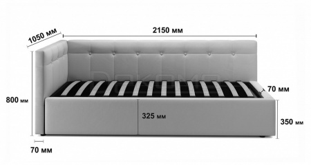 Интерьерная кровать-тахта имеет усиленное металлическое основание с амортизирующими ортопедическими ламелями.