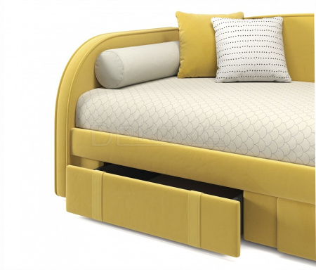 Кровать диван Elda со спинками с трех сторон выполнена из модной мебельной ткани - велюр. Это уникальный материал, который получается за счет сплетения 5 волокон одновременно. Дорогая ткань велюр придает кровати более величественный и благородный вид. Ткань износостойкая, легко чистится от загрязнений, практичная, эластичная, устойчивая к ультрафиолету. Мягкие изголовья придают не только изысканность кровати, но и позволяют использовать кровать-тахту в качестве мягкого дивана для отдыха.