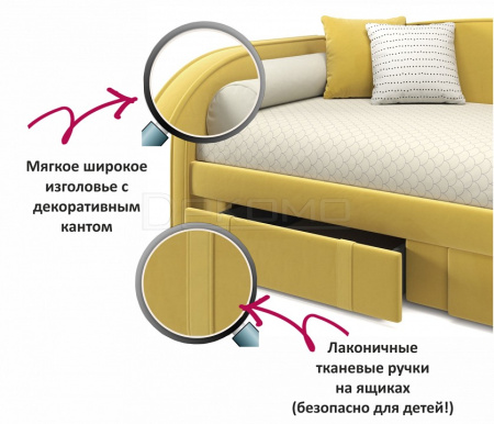 Кровать диван Elda со спинками с трех сторон выполнена из модной мебельной ткани - велюр. Это уникальный материал, который получается за счет сплетения 5 волокон одновременно. Дорогая ткань велюр придает кровати более величественный и благородный вид. Ткань износостойкая, легко чистится от загрязнений, практичная, эластичная, устойчивая к ультрафиолету. Мягкие изголовья придают не только изысканность кровати, но и позволяют использовать кровать-тахту в качестве мягкого дивана для отдыха.