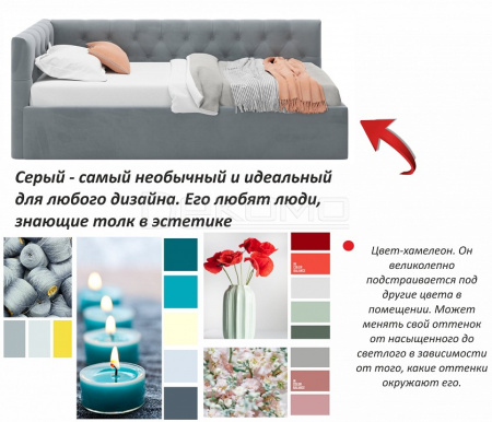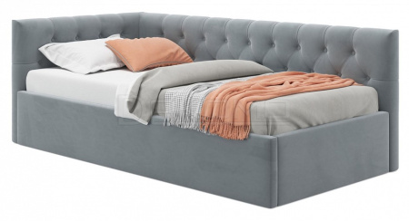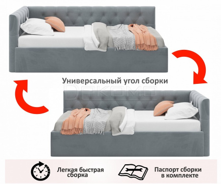 Односпальная мягкая кровать-тахта Afelia (Афелия) с ортопедическим основанием и спальным местом 90x200._x000D_ Кровать-тахта Афелия с двумя мягкими спинками выполнена из модной мебельной ткани – велюр. Это уникальный материал, который получается за счет сплетения пяти волокон одновременно. Ткань износостойкая, легко чистится от загрязнений, практичная, эластичная, устойчивая к ультрафиолету._x000D_