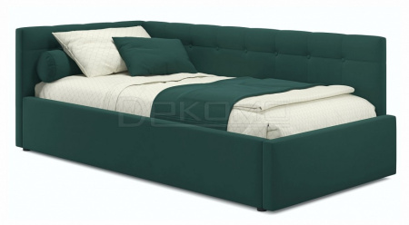 Мягкая односпальная кровать с подъемным механизмом и двумя мягкими спинками выполнена из модной мебельной ткани – велюр. Это уникальный материал, который получается за счет сплетения пяти волокон одновременно. Дорогая ткань велюр придает кровати более величественный благородный вид. Ткань износостойкая, легко чистится.