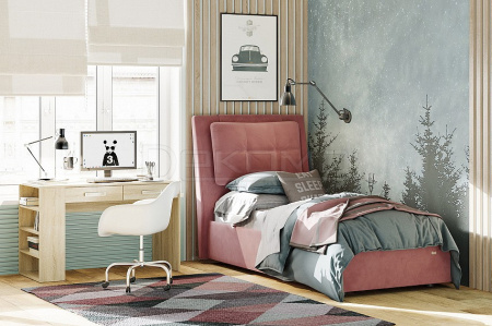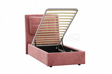 Кровать Ester прекрасно дополнит интерьер спальни, молодёжной или детской комнаты. Конструкция с одной головной спинкой, с подъемным механизмом и ящиком для белья. Спинка с мягким элементом и отделкой пуговицами. Матрас приобретается отдельно.