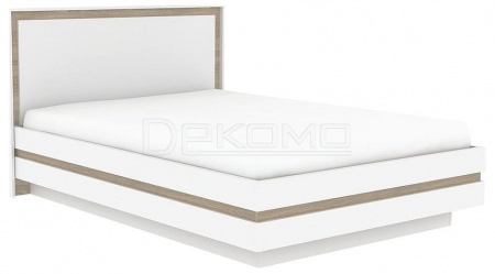 Двуспальная белоснежная кровать из серии Анона с декоративными вставками дуб сонома по основанию и на изголовье.