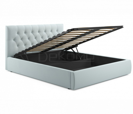 Яркий акцент кровати из ткани Verona сделан на мягкое высокую рельефную спинку (мягкий подголовник) в стиле «Chester Laurence» с классической «каретной стяжкой», изготовленную вручную мастерами с 20-летним стажем.