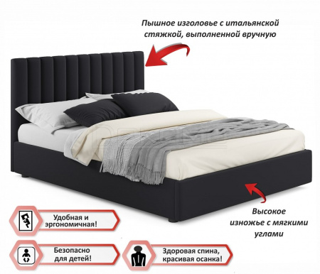 Обивка изголовья и весь периметр мягкой кровати Olivia 140 см. выполнен из высокопрочного мебельного материала – велюр. Это уникальный материал, который получается за счет сплетения пяти волокон одновременно. Ткань износостойкая, легко чистится от загрязнений, практичная, эластичная, устойчивая к ультрафиолету. Задняя стенка обшита спанбондом.