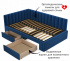 Угол сборки универсальный – может собираться как на правую, так и на левую сторону. Укомплектована основанием - ортопедическими ламелями на металлической рамке и двумя выкатными ящиками (полного выдвижения).