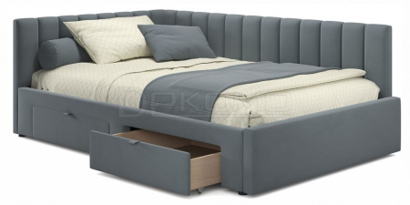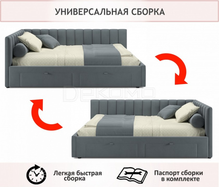 Угол сборки универсальный – может собираться как на правую, так и на левую сторону. Укомплектована основанием - ортопедическими ламелями на металлической рамке и двумя выкатными ящиками (полного выдвижения).
