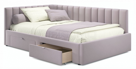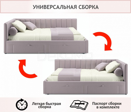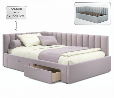 Угол сборки универсальный – может собираться как на правую, так и на левую сторону. Укомплектована основанием - ортопедическими ламелями на металлической рамке и двумя выкатными ящиками (полного выдвижения).