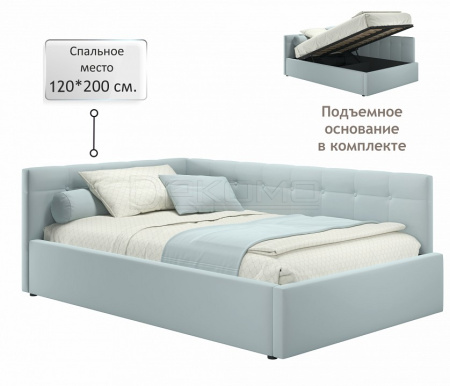 Укомплектована подъемным основанием - ортопедическими ламелями на металлической рамке. Подъемный механизм с гнутоклееными ортопедическими основаниями поднимает кровать под углом 45 градусов. Газлифты повышенной мощности позволяют поднимать и опускать ортопедическую рамку с матрасом без всяких усилий. Подкроватное пространство закрыто противопыльным матерчатым коробом из плотного спанбонда. Матерчатый короб фиксируется в подматрасном пространстве с помощью системы ленты-липучки "HOOK&LOОP" и служит ящиком для постельного белья и прочих принадлежностей.
