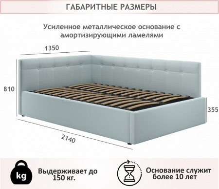 Угол сборки универсальный – может собираться как на правую, так и на левую сторону. Укомплектована основанием - ортопедическими ламелями на металлической рамке. Высокие стенки обшиты сзади спанбондом. Рекомендуем размещать кровать к стене.
