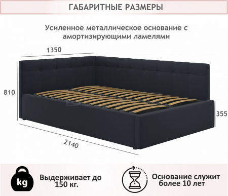 Угол сборки универсальный – может собираться как на правую, так и на левую сторону. Укомплектована основанием - ортопедическими ламелями на металлической рамке. Высокие стенки обшиты сзади спанбондом. Рекомендуем размещать кровать к стене.