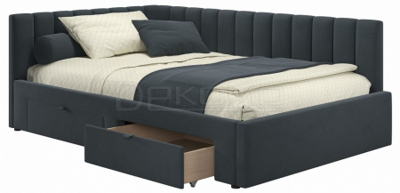 Угол сборки универсальный – может собираться как на правую, так и на левую сторону. Укомплектована основанием - ортопедическими ламелями на металлической рамке и двумя выкатными ящиками (полного выдвижения).