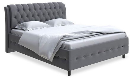 Королевская грациозность в виде благородной каретной пиковки, уют и комфорт благодаря мягким углам царгового пояса. Высокие, стильные, черные матовые опоры и увеличенный просвет над полом созданы для возможности уборки под кроватью и работы робота-пылесоса.