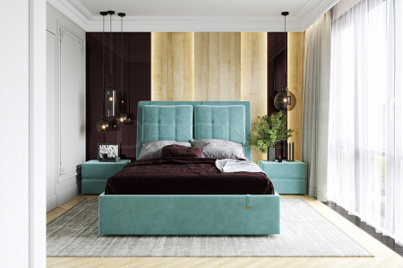 Кровать Ester станет прекрасным дополнением интерьера спальной комнаты. Конструкция с одной головной спинкой, с подъемным механизмом и ящиком для белья. Спинка с мягким элементом и отделкой пуговицами. Матрас приобретается отдельно.