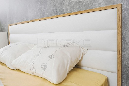 Ключевым элементом в Вашей современной спальне станет двуспальная кровать Айрис. Текстурные опоры и массивная рама на изголовье поддерживают эко-направленность всей коллекции, выполненной в скандинавском стиле. Мягкая спинка со стяжкой обтянута белой экокожей, которая не боится деформации и не требует специального ухода. Кровать комплектуется ортопедическим основанием с подъемным механизмом.