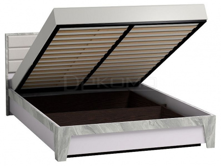 Ключевым элементом в Вашей современной спальне станет двуспальная кровать Айрис. Текстурные опоры и массивная рама на изголовье поддерживают направленность всей коллекции, выполненной в современном стиле. Мягкая спинка со стяжкой обтянута белой экокожей, которая не боится деформации и не требует специального ухода. Кровать комплектуется ортопедическим основанием с подъемным механизмом.