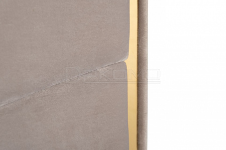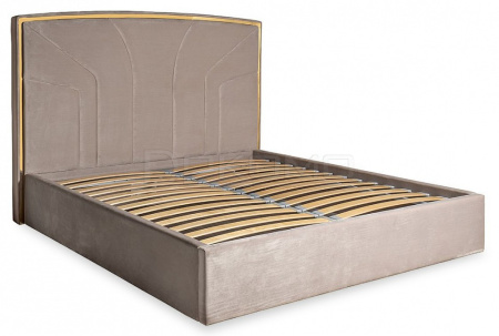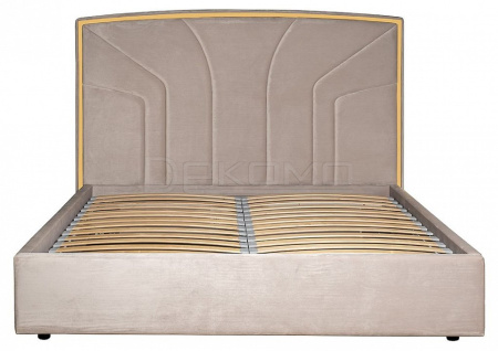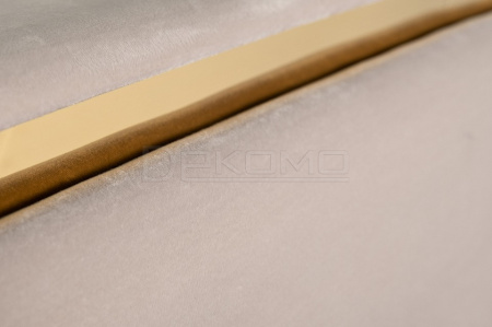 Стильная кровать с лаконичным дизайном в виде расходящихся от центра к краям лучей настраивает на спокойствие и уравновешенность. Мягкий велюр жемчужно-серого оттенка сочетается с золотистым металлическим контуром изголовья, придающим элемент законченности.