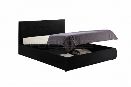 Кровать Селеста с высоким оригинальным изголовьем и подъемным механизмом имеет рельефную мягкую спинку с неглубокими стяжками, которые придают особую изысканность изголовью.