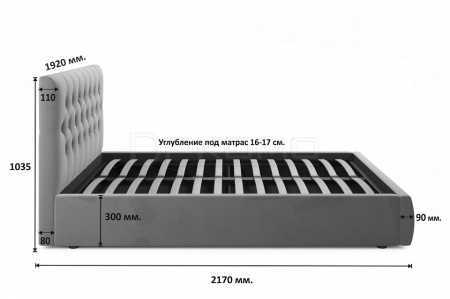 Яркий акцент кровати из ткани Verona сделан на мягкое высокую рельефную спинку (мягкий подголовник) в стиле «Chester Laurence» с классической «каретной стяжкой», изготовленную вручную мастерами с 20-летним стажем.