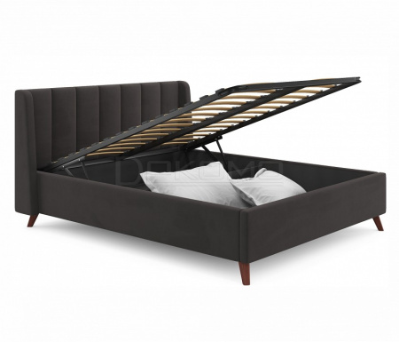 Мягкая интерьерная двуспальная кровать на ножках “Betsi” с мягким изголовьем и подъемным механизмом – истинное королевское украшение любой спальни.