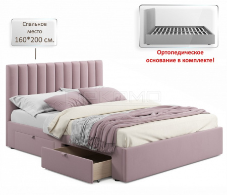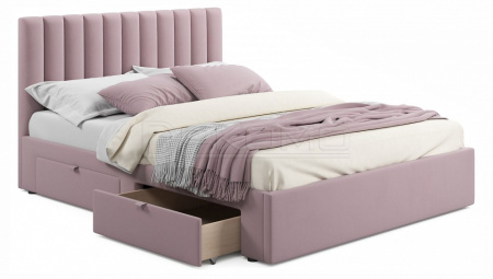 Мягкая двуспальная кровать с ортопедическим основанием и двумя выкатными ящиками – стильный и современный предмет мебели. Изюминкой двуспальной кровати из ткани является мягкое изголовье в виде объемных прямоугольных “батонов”. Обивка изголовья и весь периметр мягкой 2-спальной кровати выполнен из высокопрочного мебельного материала – велюр. Ткань износостойкая, легко чистится от загрязнений, практичная, эластичная, устойчивая к ультрафиолету. Задняя стенка обшита спанбондом.
