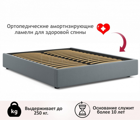 Кровать оборудована удобным подъемным механизмом. Подъемный механизм с гнутоклееными ортопедическими основаниями поднимает кровать под углом 45 градусов. Внизу - дополнительное место для хранения постельного белья и вещей не первой необходимости.Подкроватное пространство закрывается противопыльным матерчатым коробом из плотного спанбонда. Матерчатый короб фиксируется в подматрасном пространстве с помощью системы ленты-липучки "HOOK&LOOP". Безопасное противоударное скругление в ножной спинке является весьма актуальным и взрослым, и детям. Нагрузка на одно спальное место 125 кг. Рекомендуемый вес матраса - не более 35 кг. Рекомендуемая высота матраса – не более 20 см.
