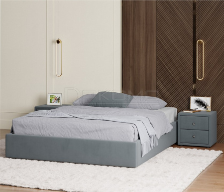 Весь периметр 2 спальной кровати выполнен из мебельной ткани – велюр.Ткань износостойкая, легко чистится от загрязнений.