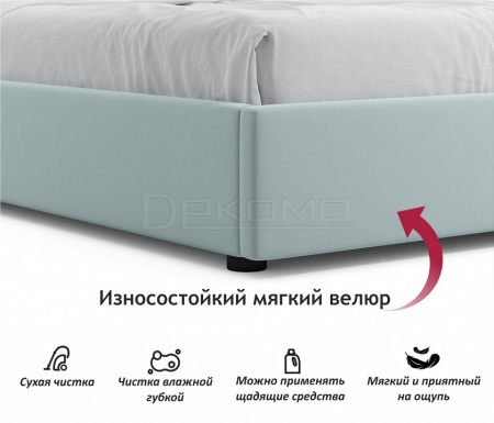 Весь периметр 2 спальной кровати выполнен из мебельной ткани – велюр.Ткань износостойкая, легко чистится от загрязнений.