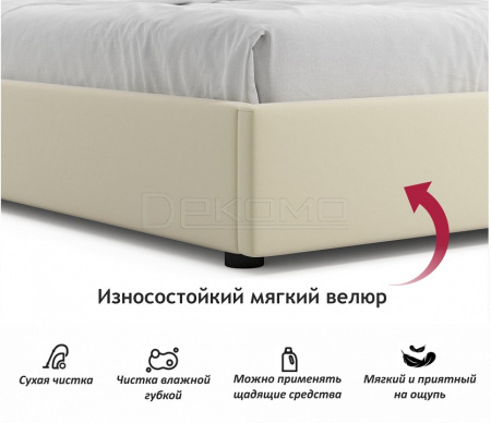 Весь периметр 2 спальной кровати выполнен из мебельной ткани – велюр.Ткань износостойкая, легко чистится от загрязнений.