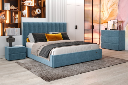 Кровать Ingrid станет ярким дополнением к интерьеру спальной комнаты. Конструкция с одной головной спинкой, с подъемным механизмом и ящиком для белья. Спинка с мягкой обивкой.