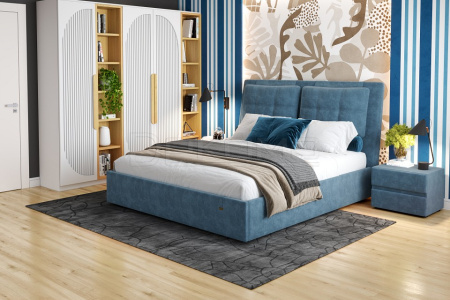Кровать Ester обладает стильным дизайном и превосходным местом для сна и отдыха. Конструкция с одной головной спинкой, с подъемным механизмом и ящиком для белья. Спинка с мягким элементом и отделкой пуговицами. Матрас приобретается отдельно.