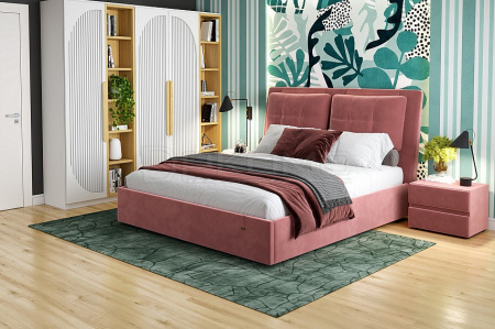 Кровать Ester обладает стильным дизайном и превосходным местом для сна и отдыха. Конструкция с одной головной спинкой, с подъемным механизмом и ящиком для белья. Спинка с мягким элементом и отделкой пуговицами. Матрас приобретается отдельно.