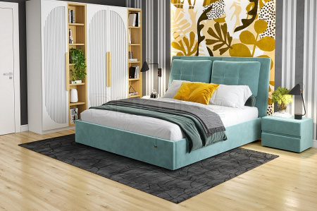 Кровать Ester обладает стильным дизайном и превосходным местом для сна и отдыха. Конструкция с одной головной спинкой, с подъемным механизмом и ящиком для белья. Спинка с мягким элементом и отделкой пуговицами. Матрас приобретается отдельно.