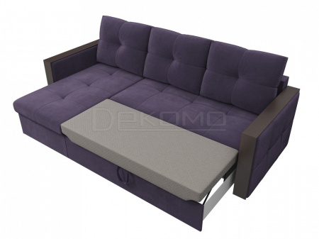 Спальный угловой диван Валенсия – отражение изысканной испанской классики. В нем оригинально сочетаются натуральные ткани и дерево. Спинка образуется за счет трех объемных подушек. Угол можно разместить справа или слева, по желанию будущего владельца. Подлокотники – это удобные столики с идеально ровной поверхностью. Диван дополнен вместительным ящиком для белья.