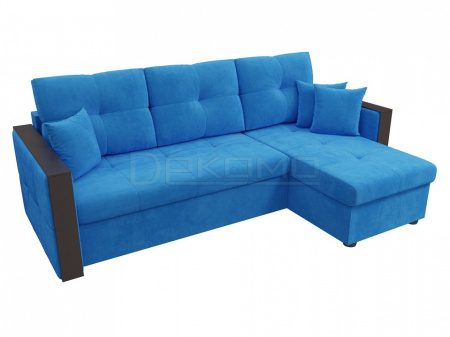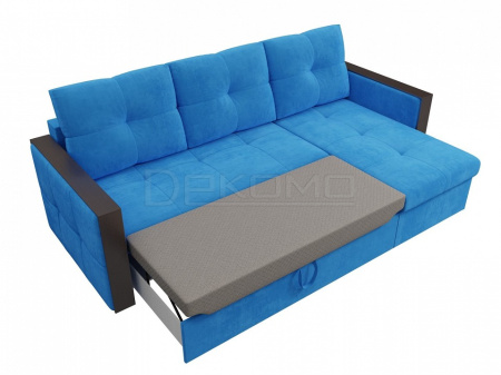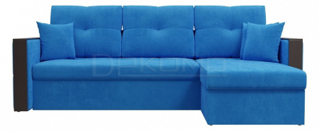 Спальный угловой диван Валенсия – отражение изысканной испанской классики. В нем оригинально сочетаются натуральные ткани и дерево. Спинка образуется за счет трех объемных подушек. Угол можно разместить справа или слева, по желанию будущего владельца. Подлокотники – это удобные столики с идеально ровной поверхностью. Диван дополнен вместительным ящиком для белья.