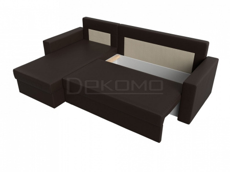Угловой диван «Траумберг Лайт» является современным угловым раскладным диваном с интересным дизайном и прочным каркасом из ЛДСП. Три большие мягкие съемные подушки дополняют спинку изделия, а прямые подлокотники обеспечат удобство и комфорт. Под сиденьем расположены вместительные ящики для белья. Устойчивость и надежность конструкции обеспечивают пластиковые крепкие ножки. Угловой диван «Траумберг Лайт» прекрасно впишется в интерьер как жилой комнаты, так и офиса. В качестве варианта для сна модель «Траумберг Лайт» тоже отлично подойдет. При раскладывании длина автоматически станет шириной, что позволит свободно лечь двоим. Широкий выбор расцветок позволяет подобрать оптимальный вариант под стилистику помещения.
