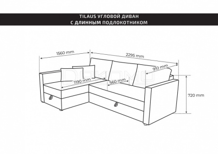 Диван трехместный с угловой секцией Вало с длинным подлокотником (ДП) Malmo 16 (beige-grey) LA 2295х910х720, цвет Светло-серый. Размеры: в разложенном виде 2295х1560х720