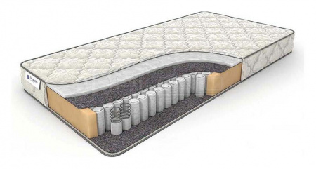Простота и удобство на независимом пружинном блоке. Современный нетканый материал холлофайбер, обладающий высокой жесткостью, обеспечивает сбалансированное распределение массы тела по поверхности матраса, оказывая профилактический эффект, предупреждающий