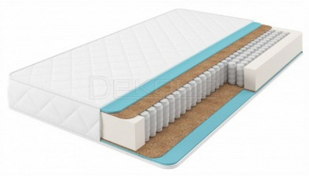 состав слоев:классический несъемный чехол жаккард стеганый на синтепоне, ППУ - 15 мм (с каждой стороны) настил из усиленного кокосового волокна - 5 мм (с каждой стороны), блок независимых пружин Pocket Spring 500 шт на спальное место - 120 мм