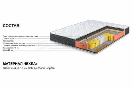 Вязкоэластичная пена с эффектом микромассажа - уникальный материал, аналогичный материалам с памятью форм, но при этом создает более приятные ощущения за счет ячеек. Способствует улучшению кровообращения и предотвращает защемление мягких тканей. Один из самых востребованых материалов класса люкс. Обеспечивает циркуляцию воздуха внутри матраса, гипоалергенен и устойчив к износу.