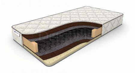 Два по цене одного. Смонтированный на классическом пружинном механизме Bonnel, данный матрас имеет поверхности с различными свойствами. Сторона А – максимальная жесткость за счет утолщенного слоя наполнителя из кокосовой койры. Сторона Б – сбалансированна